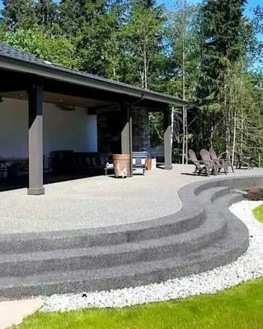Modern pattern concrete finishes can be used to define outdoor zones, making courtyards more visually appealing and suitable for relaxation or entertaining guests